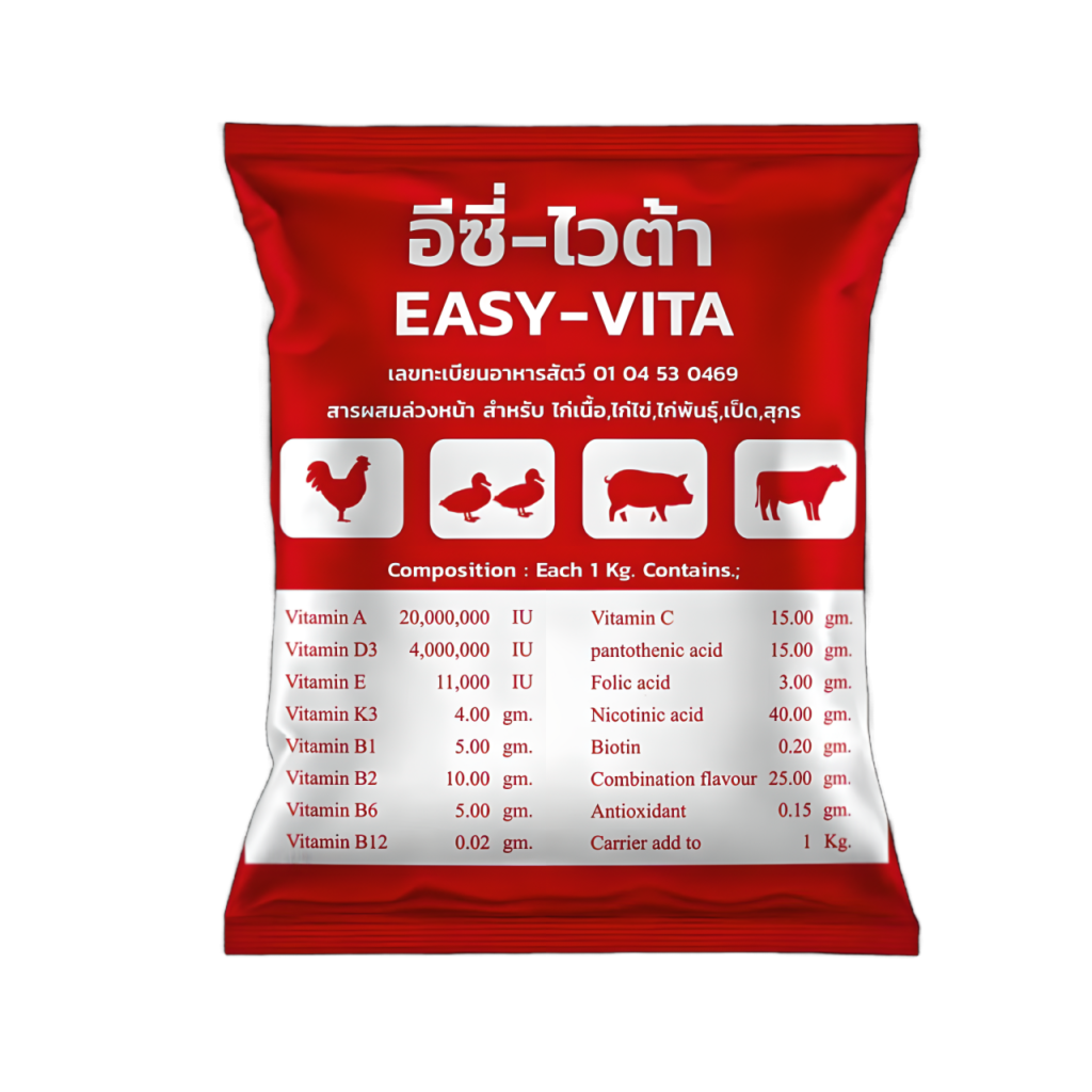 อีซี่ ไวต้า สารผสมล่วงหน้าใช้เสริมวิตามินสำหรับไก่เนื้อ ไก้ไข่ ไก่พันธุ์ ไก่ชน เป็ด สุกร วัว แพะ